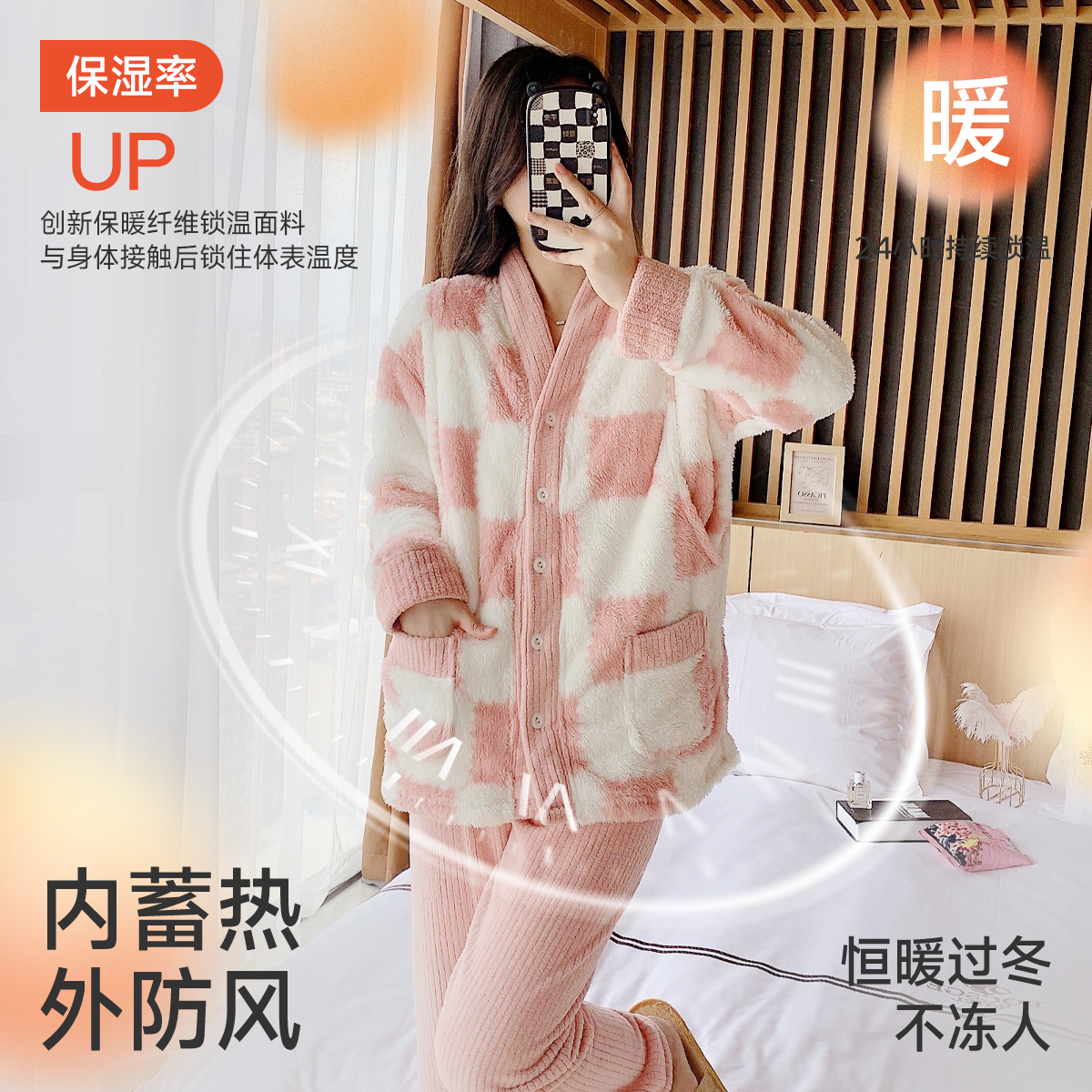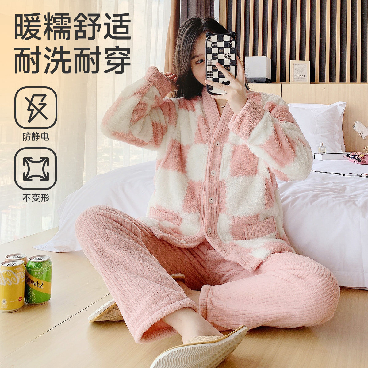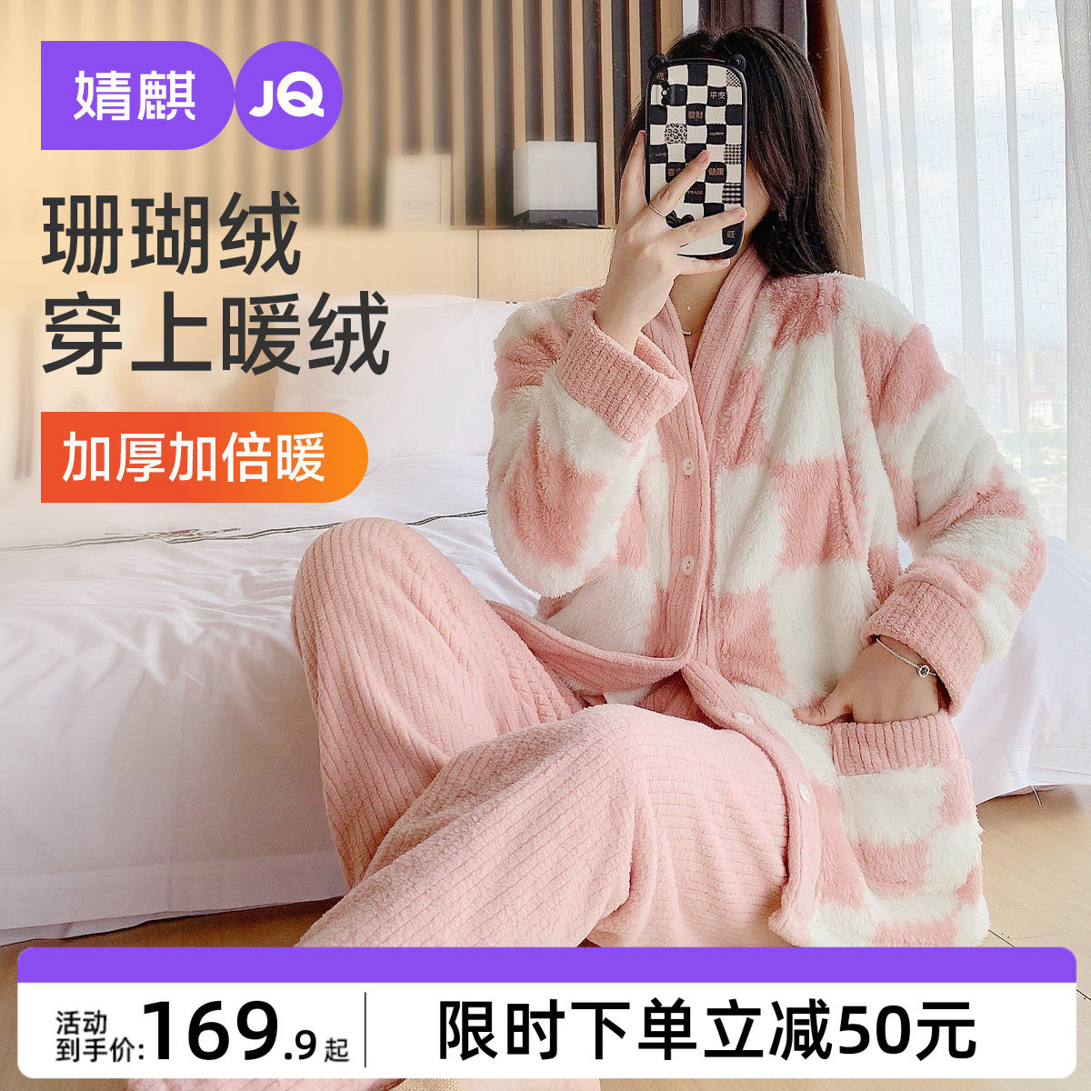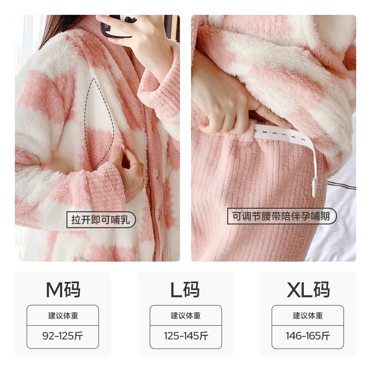 婧麒月子服孕妇冬季产后加厚加绒哺乳睡衣喂奶待产产妇家居服套装
