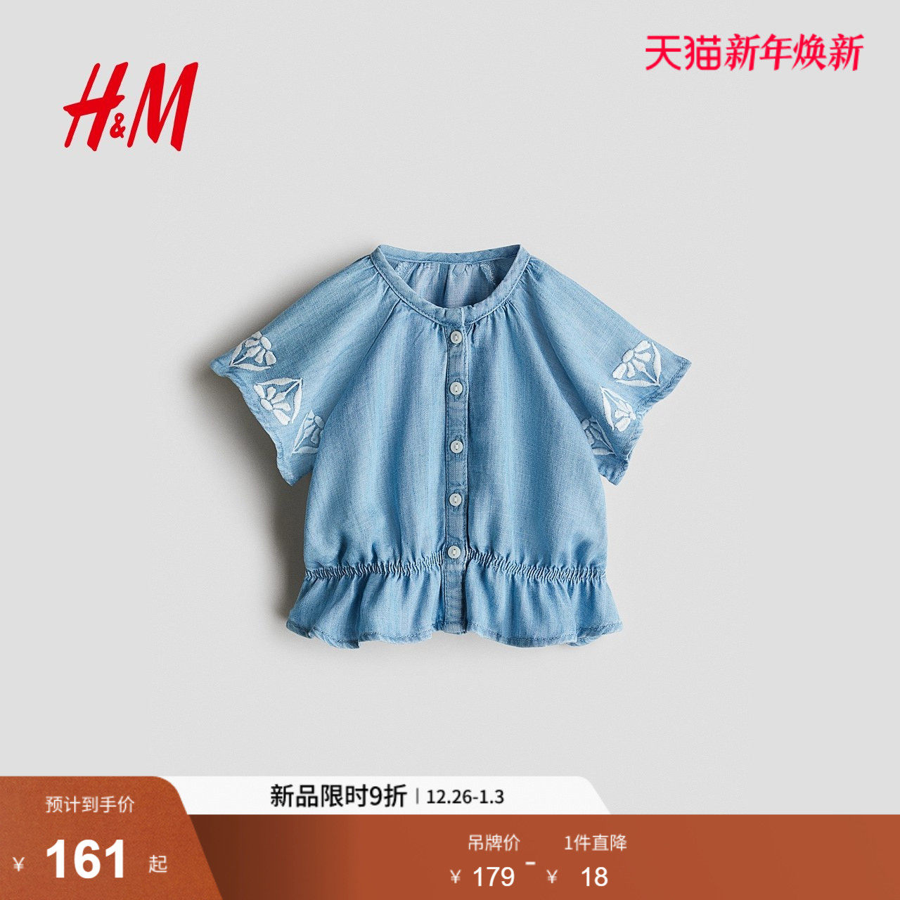 HM童装女婴衬衫春季刺绣设计牛仔衬衫上衣1291103