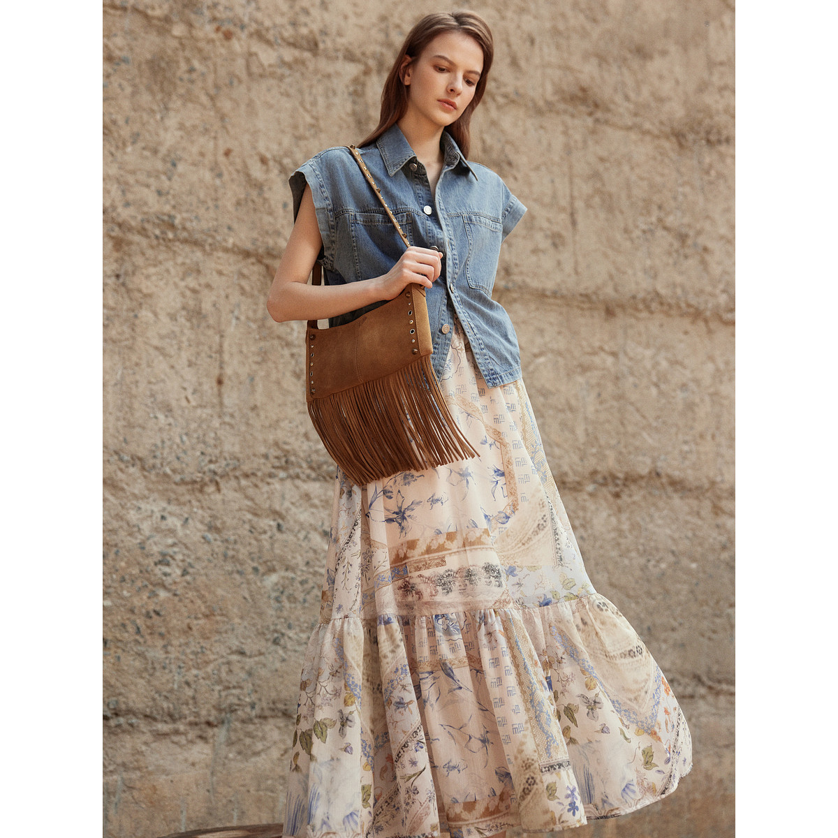 BANANA BABY2025年秋冬新款提花针织女日系碎花雪纺长款半身裙