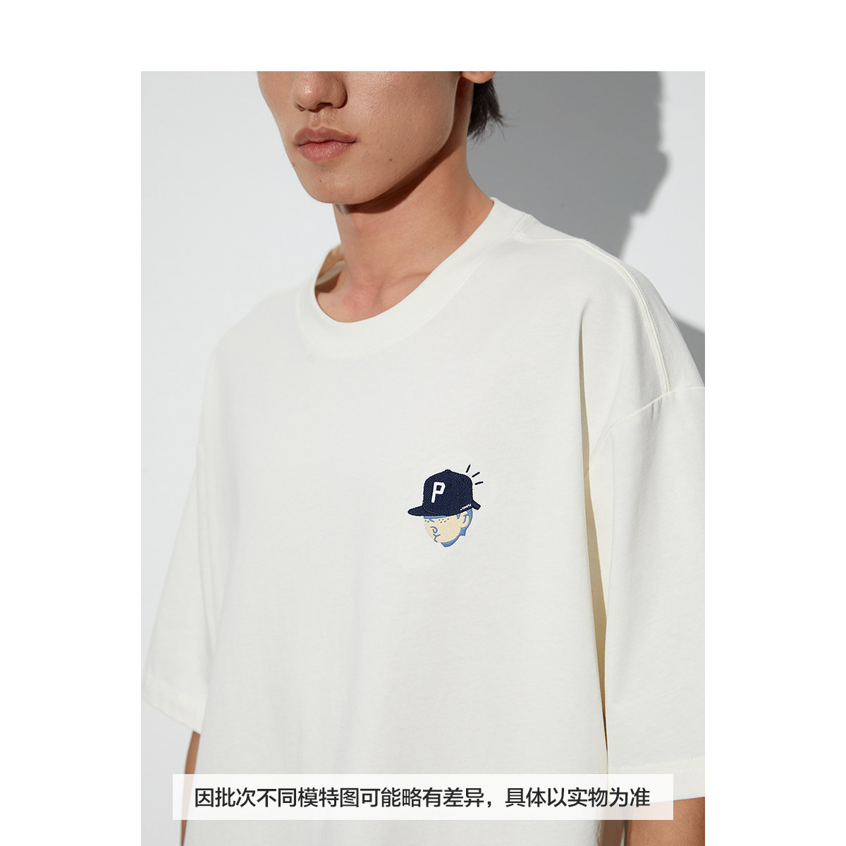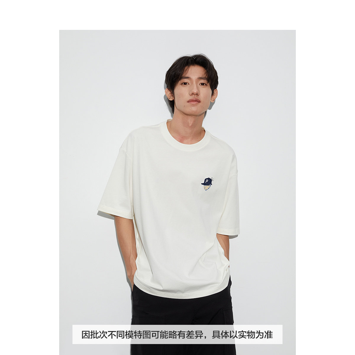 太平鸟男装 夏季重磅印花刺绣休闲T恤宽松美式街头短袖上衣潮