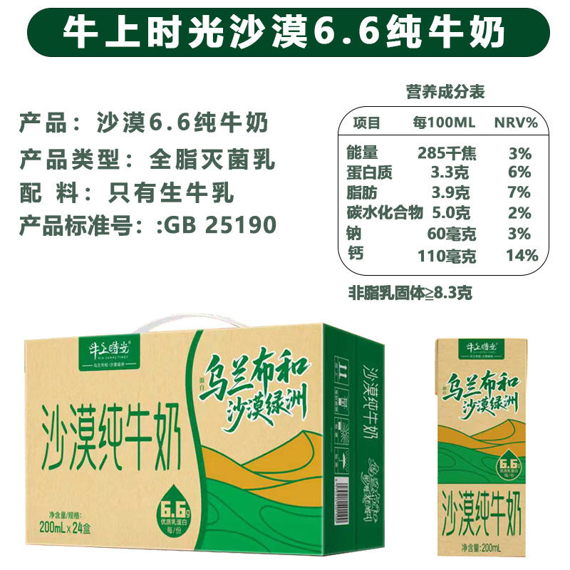 牛上时光沙漠纯牛奶全脂24包整箱原生高钙生牛乳优质新鲜常温