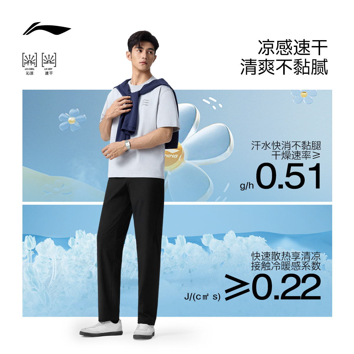 李宁绅适裤丨运动裤男新款夏季通勤跑步冰丝速干直筒健身休闲长裤