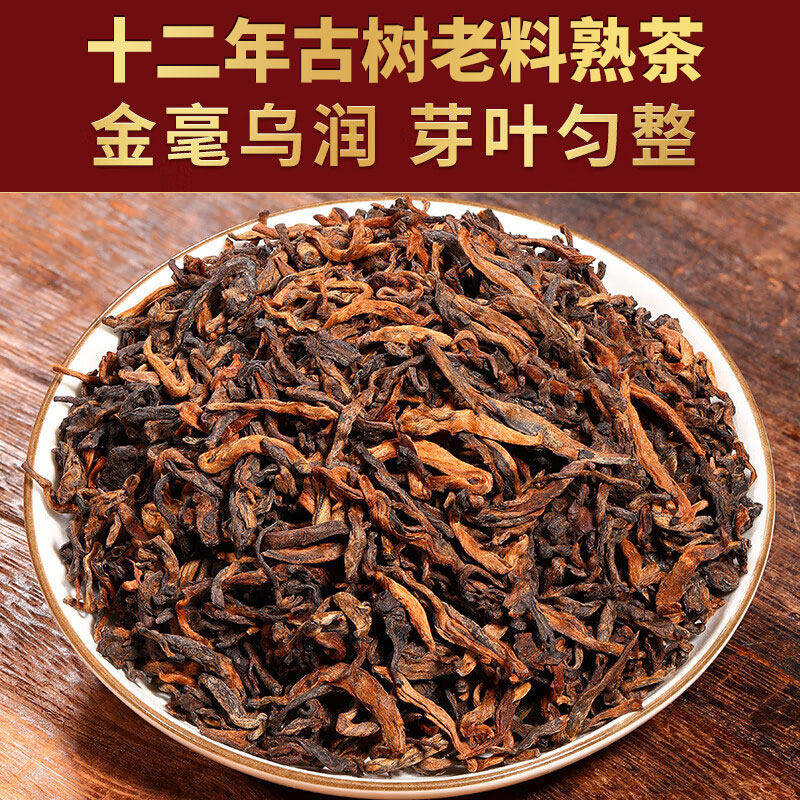 十年以上云南普洱熟散茶叶古树茶陈年老熟茶散装金芽普洱口粮熟普