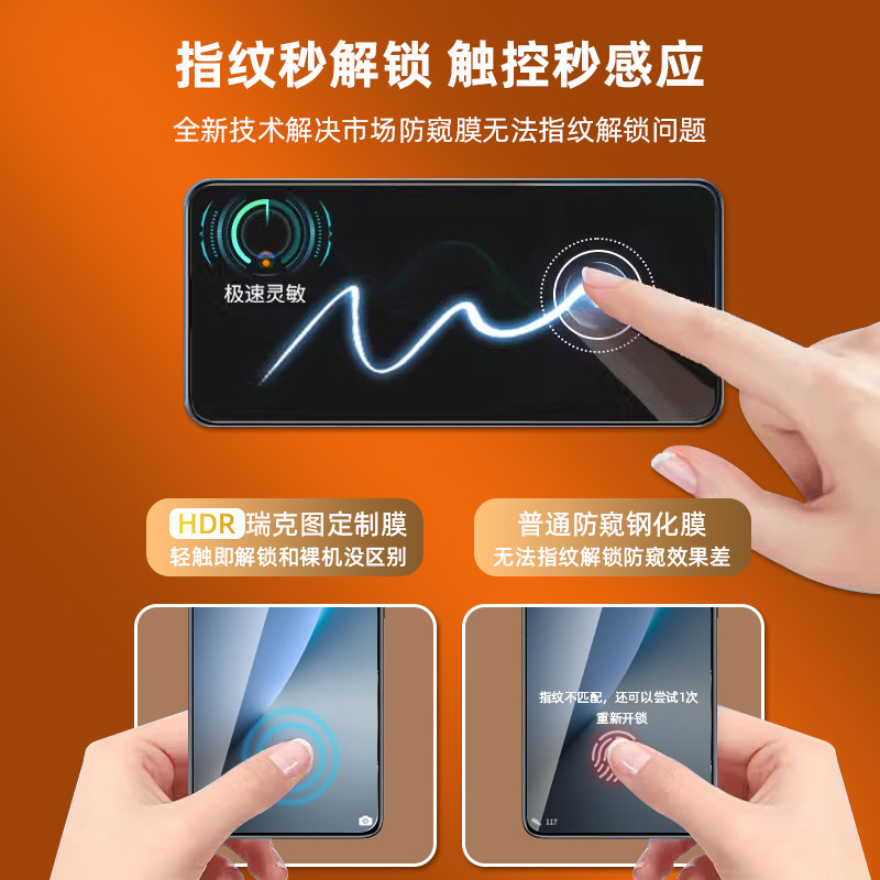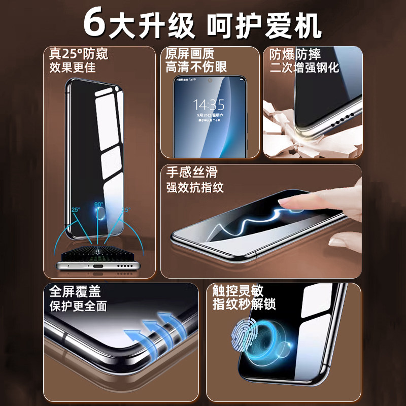 升级指纹秒解版 新25°真防窥膜 高透光无色