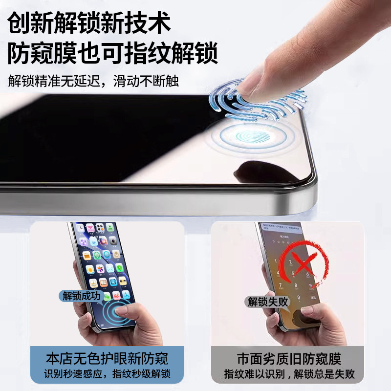 升级指纹秒解版 新25°真防窥膜 高透光无色