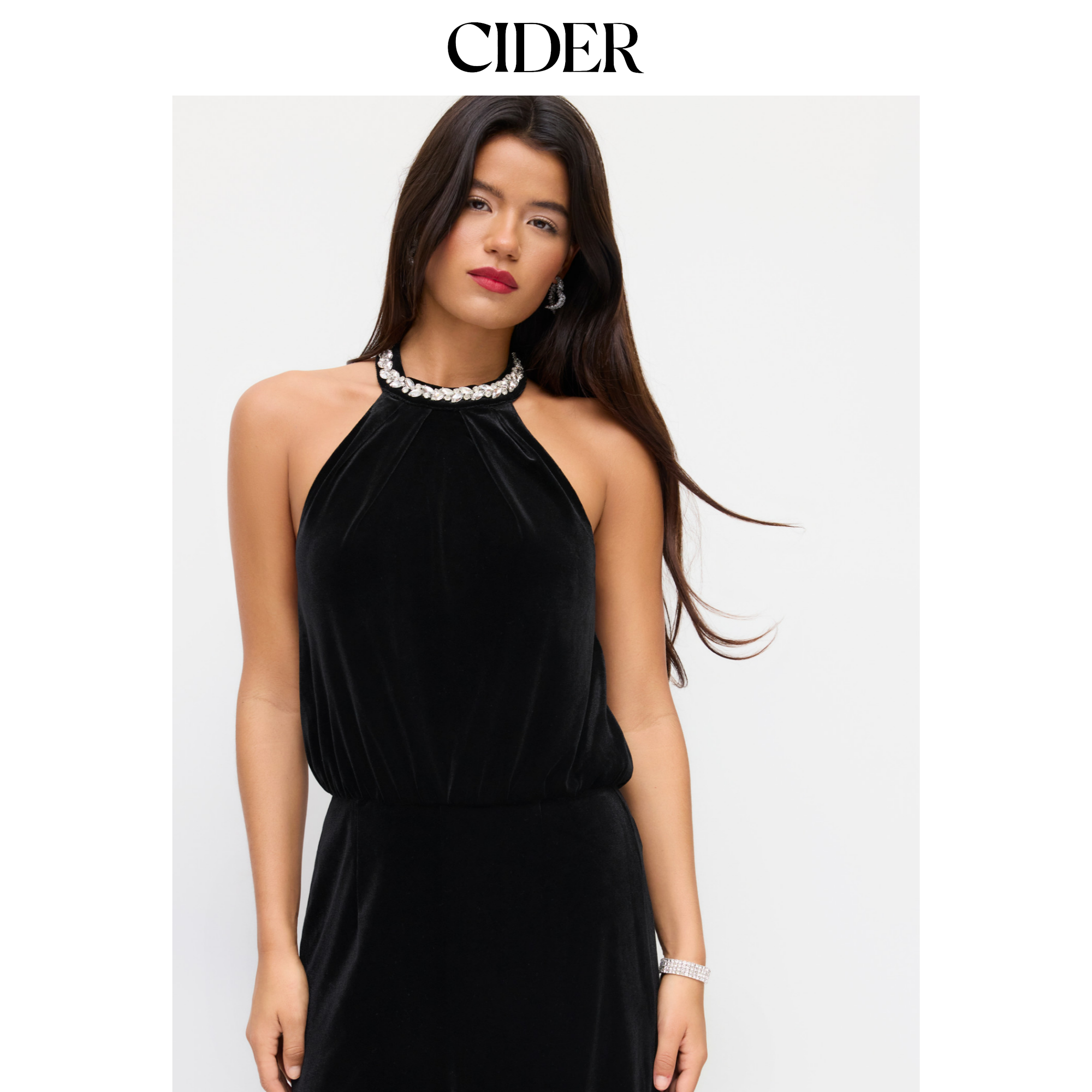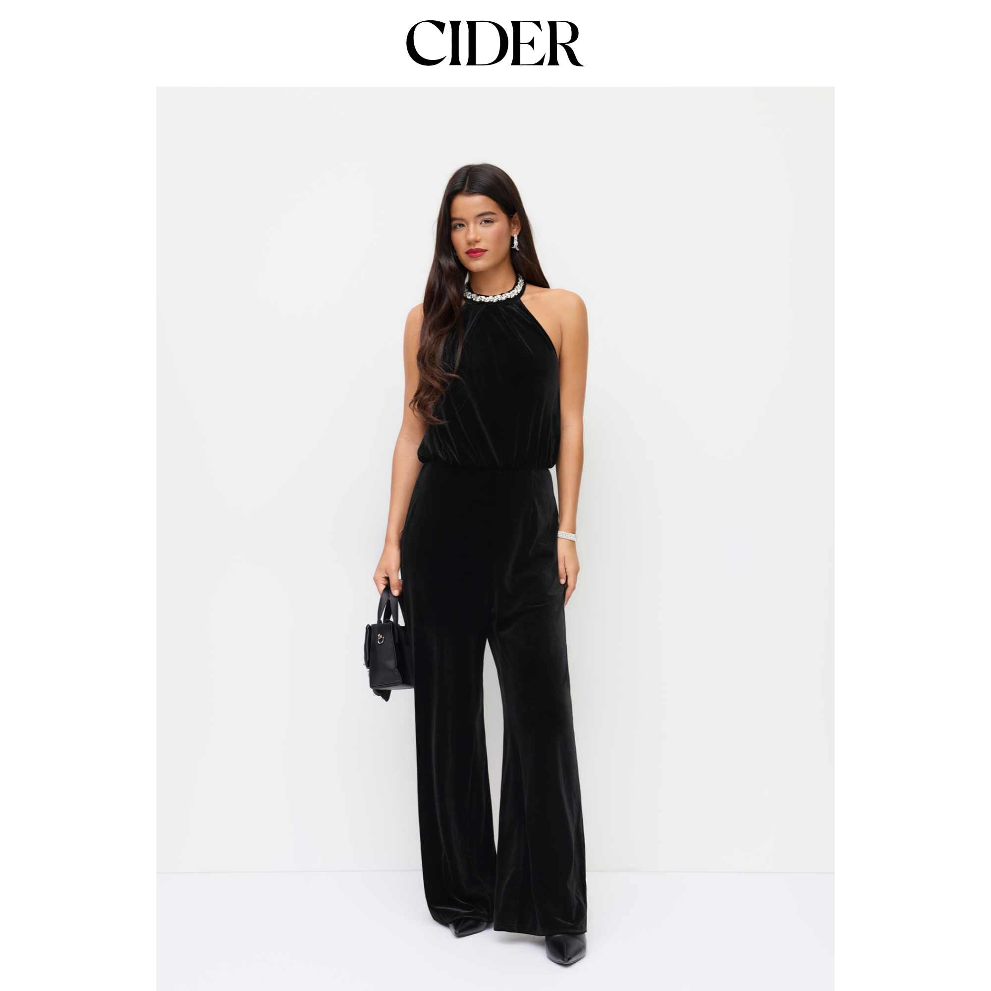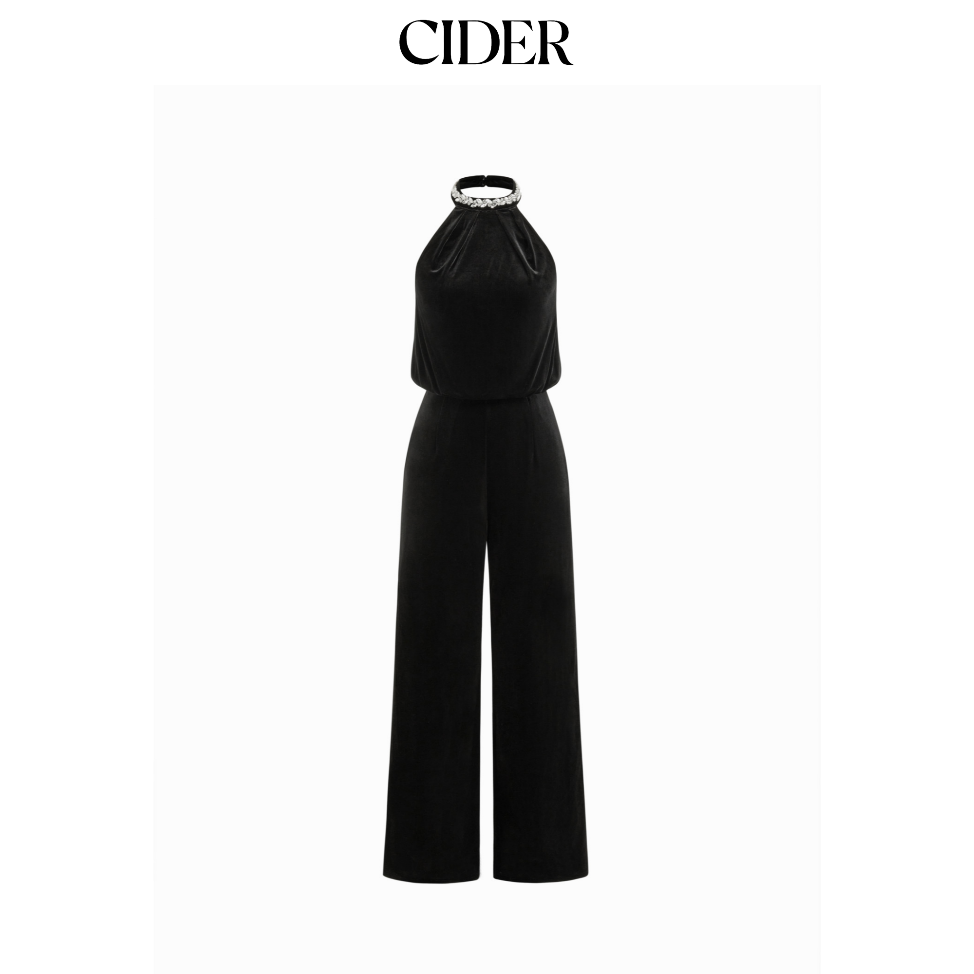 CIDER丝绒挂脖水钻阔腿连体裤115006268