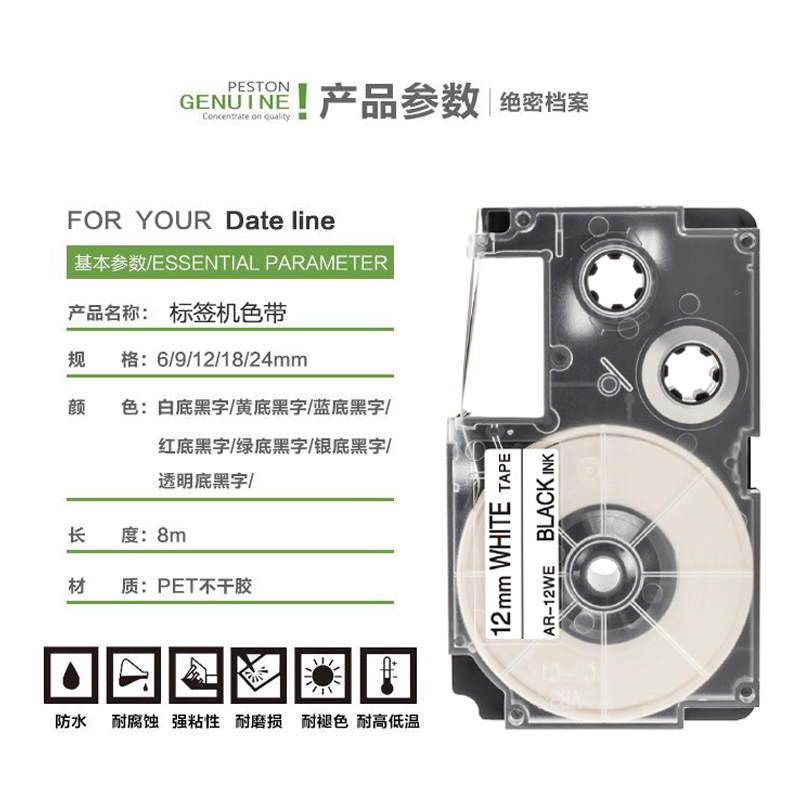 适用卡西欧标签机色带12mm 9手持KL-820/7400线缆打印贴纸xr-12we