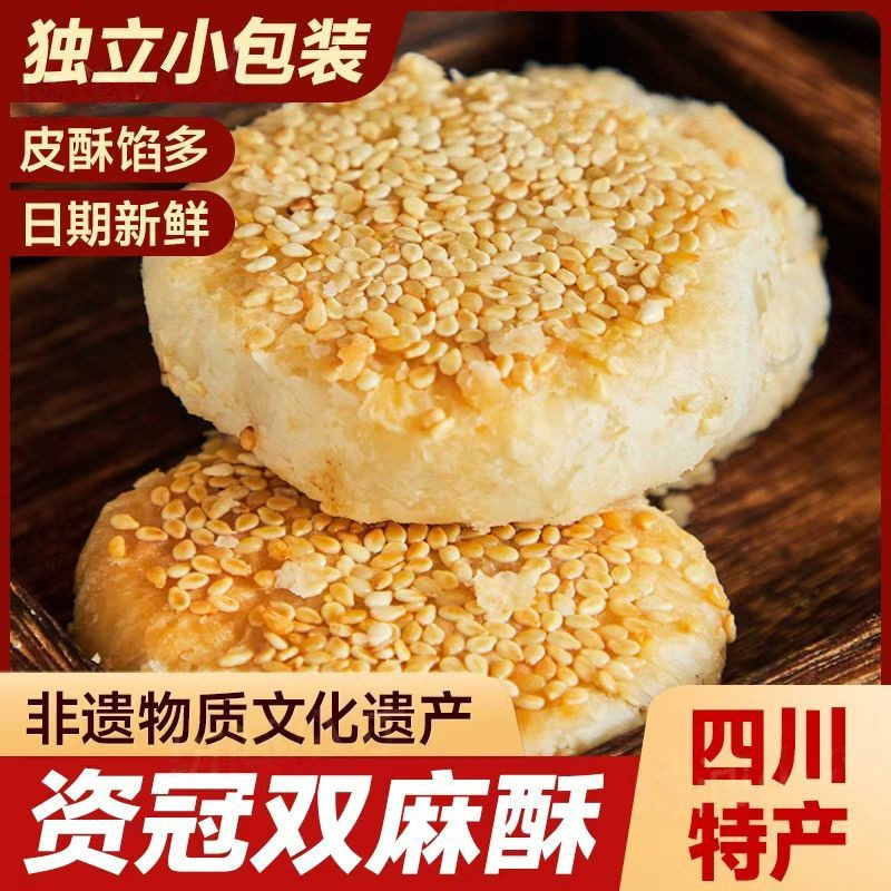 四川特产资冠椒盐双麻酥双麻饼传统老式糕点心独立包装芝麻早餐