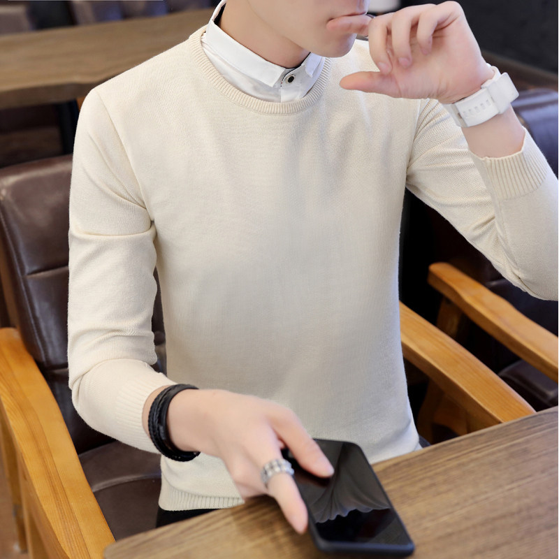 假两件毛衣男韩版衬衫领针织衫秋冬假领毛线衣毛衫带衬衣领上衣潮