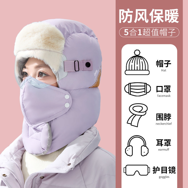 jeep吉普女士冬季雷锋帽护耳防风防寒保暖面罩骑行帽加绒加厚帽子