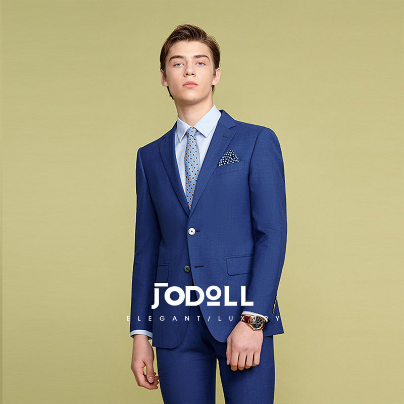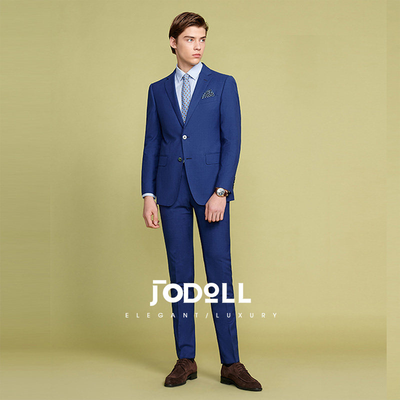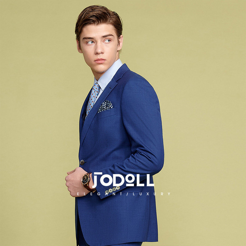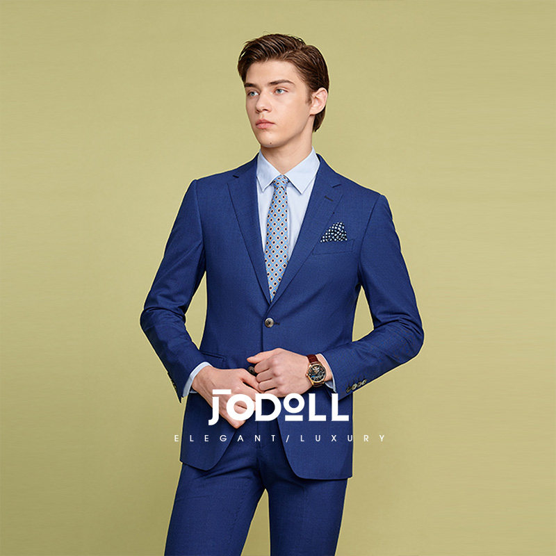 JODOLL乔顿商务正装修身羊毛西装外套男士高级感蓝色西服套装上衣