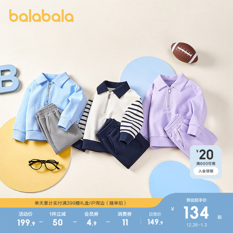 巴拉巴拉童装儿童长袖套装男童两件套女童宝宝衣服2025新款秋装潮