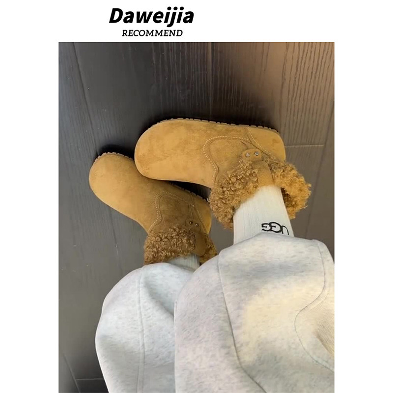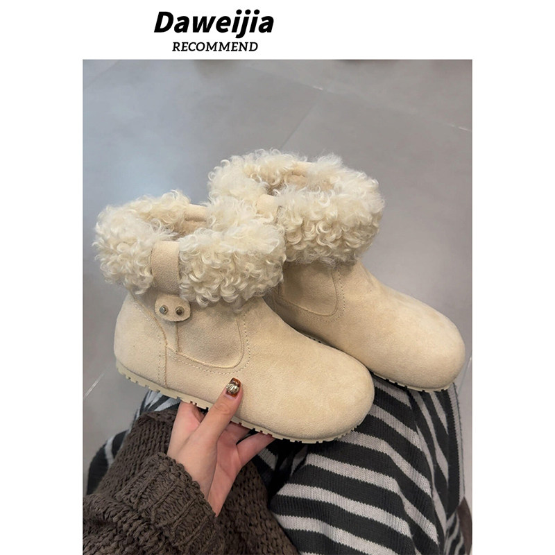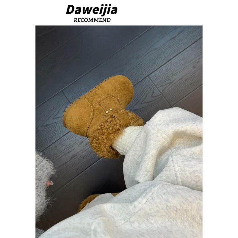 低帮厚底雪地靴女2025新款冬季懒人一脚蹬毛毛棉鞋加绒加厚女鞋子