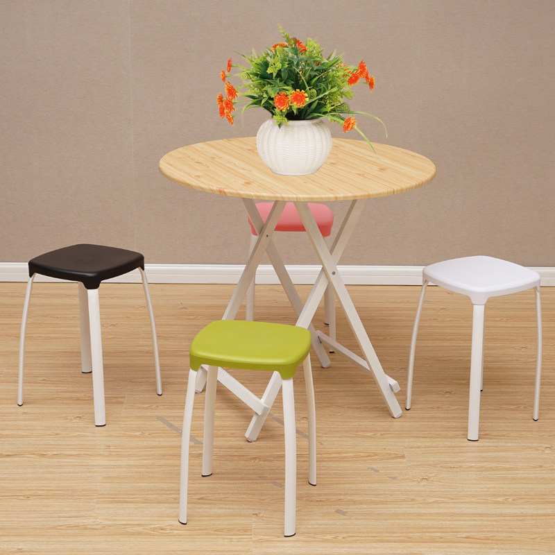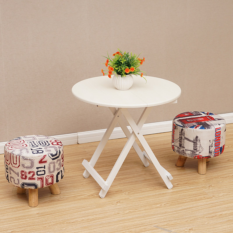 家用折叠桌户外餐桌摆摊桌小户型吃饭茶几便携实木圆桌可折叠白色