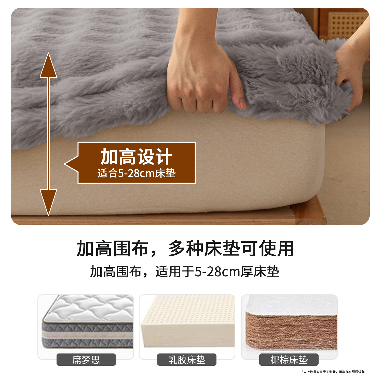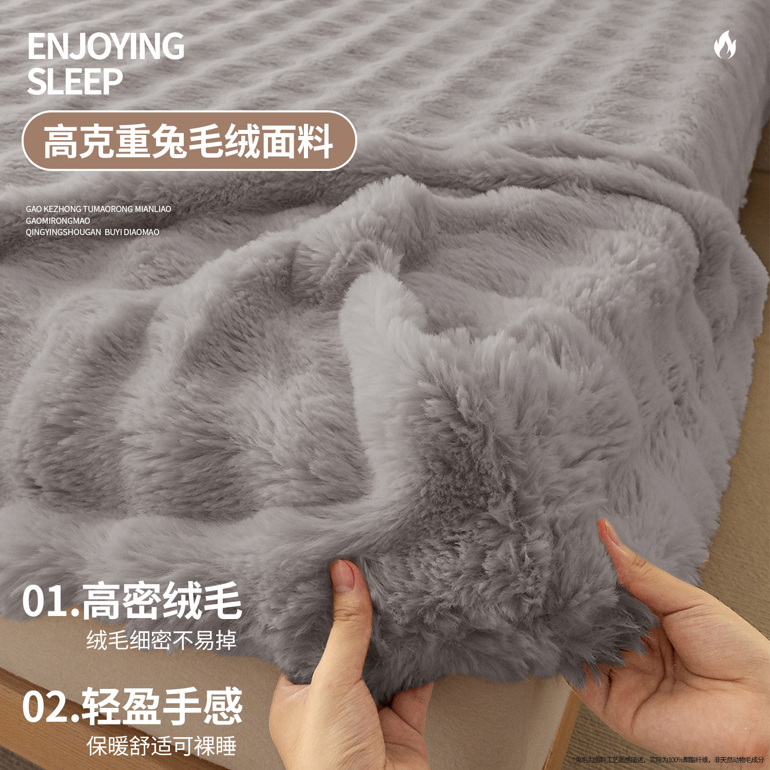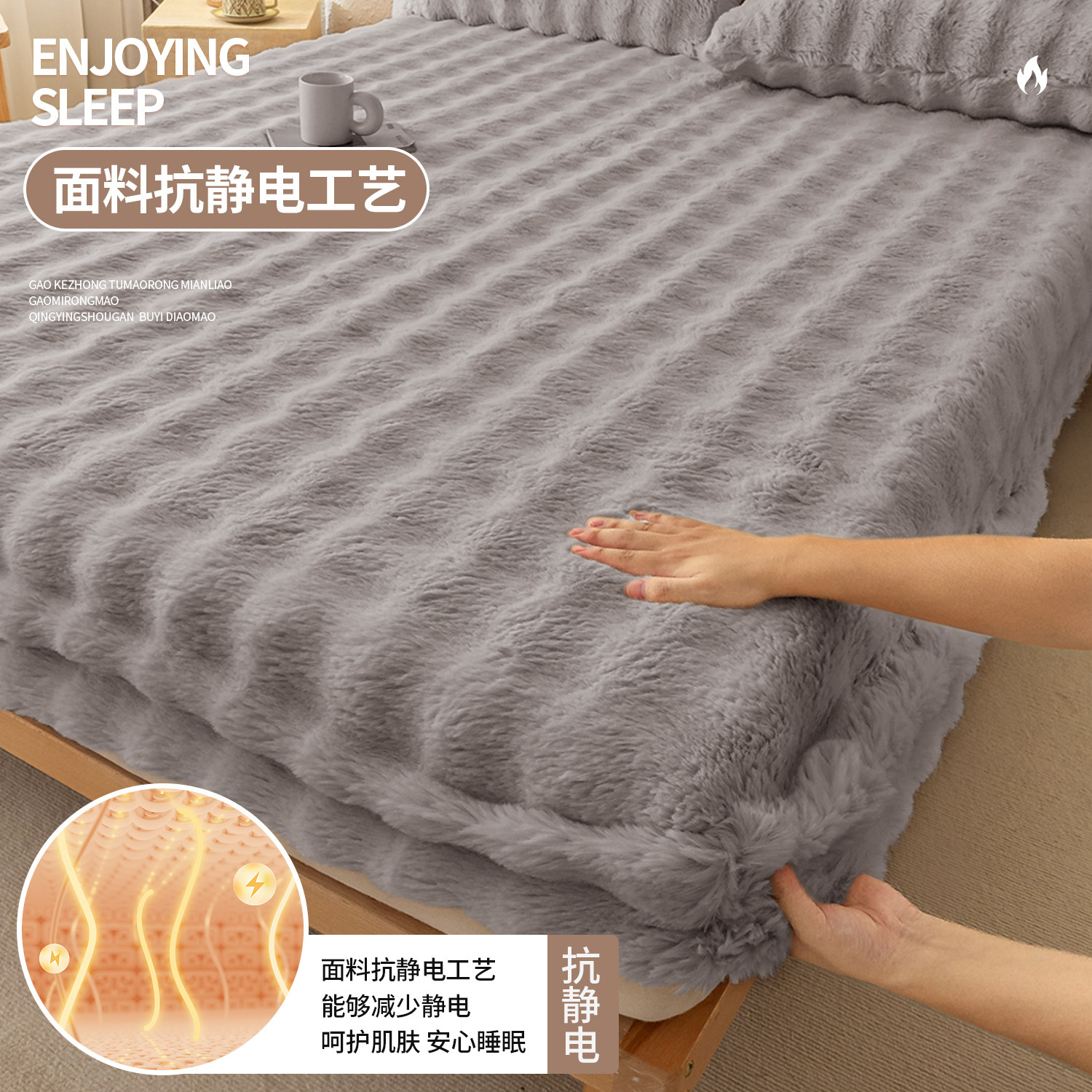 轻奢秋冬仿獭兔毛床笠防滑全包床褥垫保护罩床品三件套床单枕套新