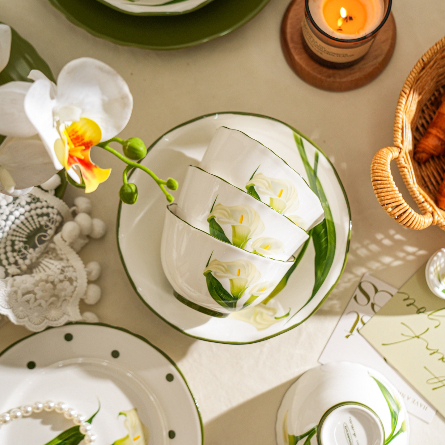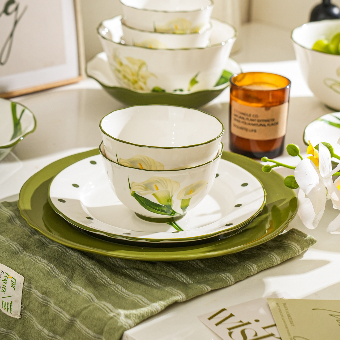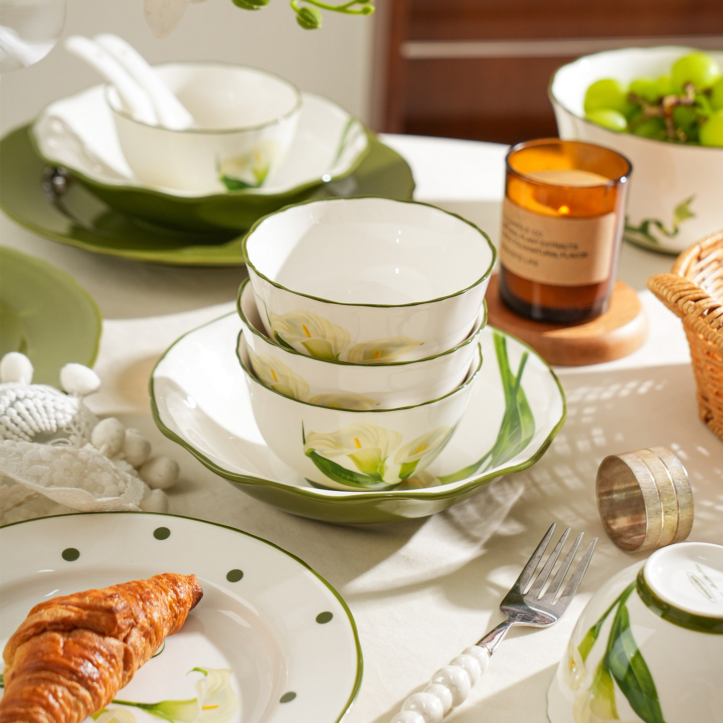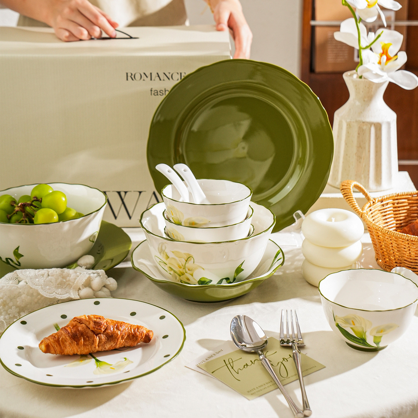 舍里清新马蹄莲碗碟套装碗具家用碗盘筷乔迁新居餐具套装伴手礼