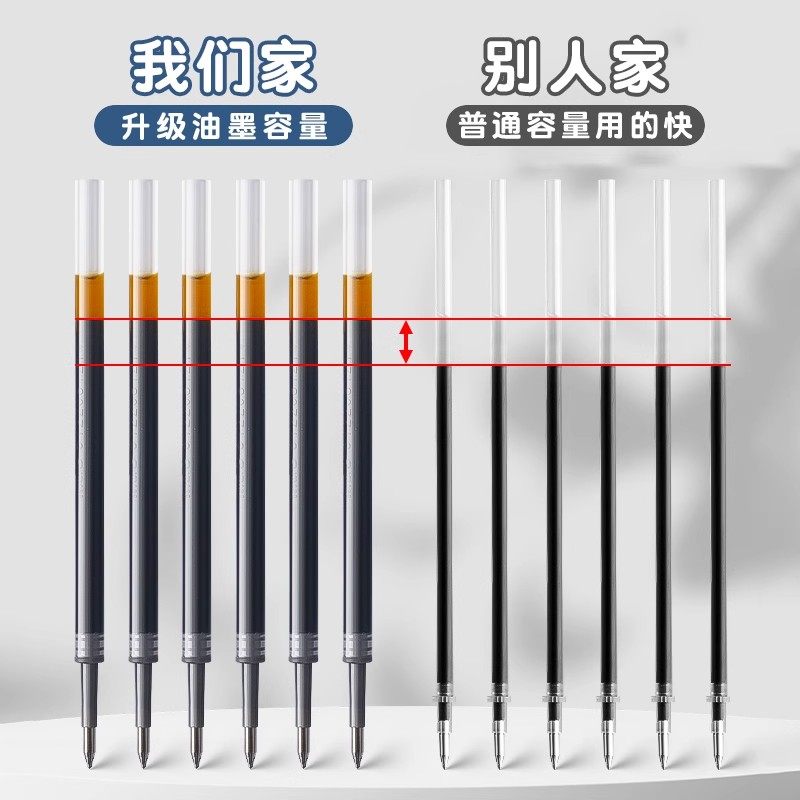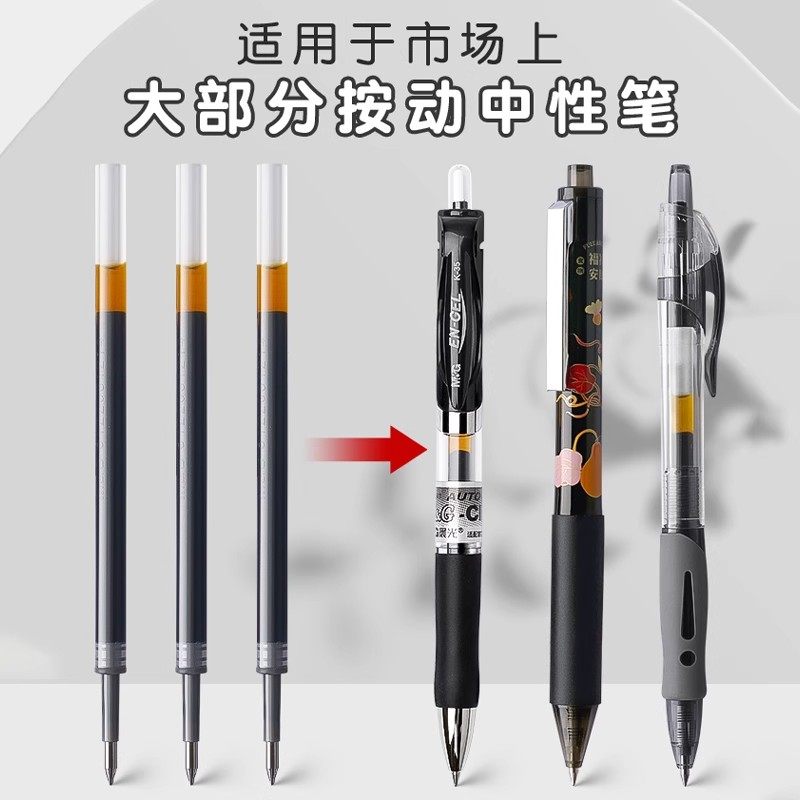 按动笔芯黑色中性笔芯0.5mm子弹头按压式粗管大容量替芯水性笔芯红笔芯墨蓝色笔芯ST笔尖速干顺滑红色替换芯
