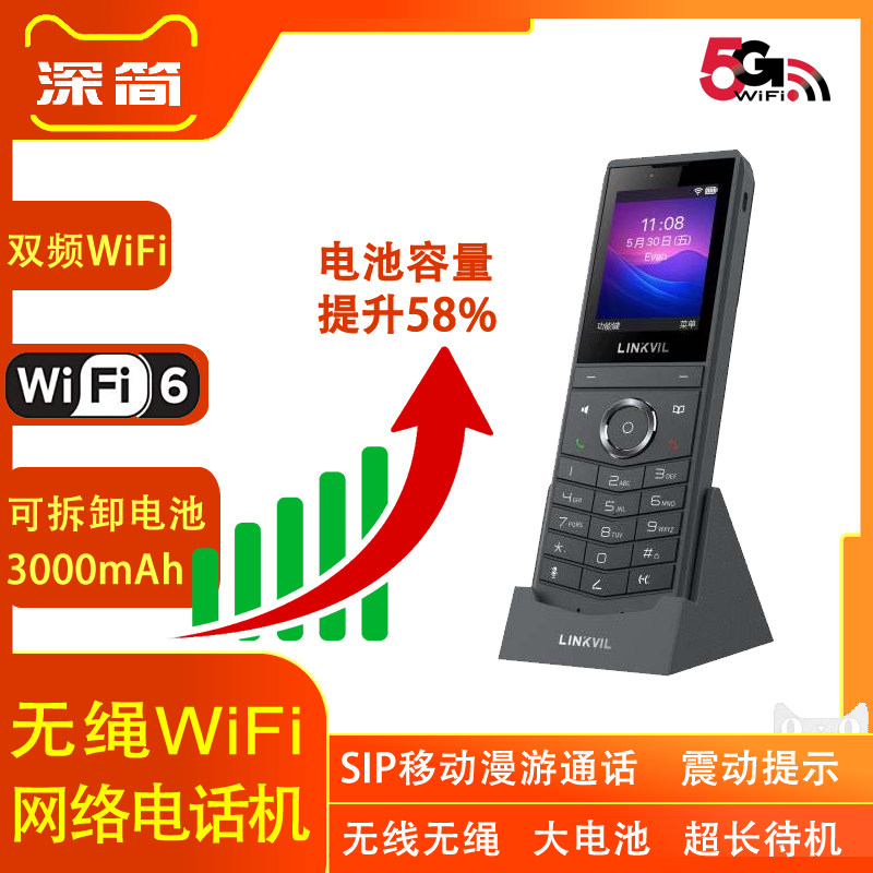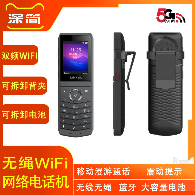 W620W便携式无绳WiFi电话机SIP协议配合IPPBX移动分机PTT对讲漫游待机震动提示可拆卸电池Linkvil无线手持机