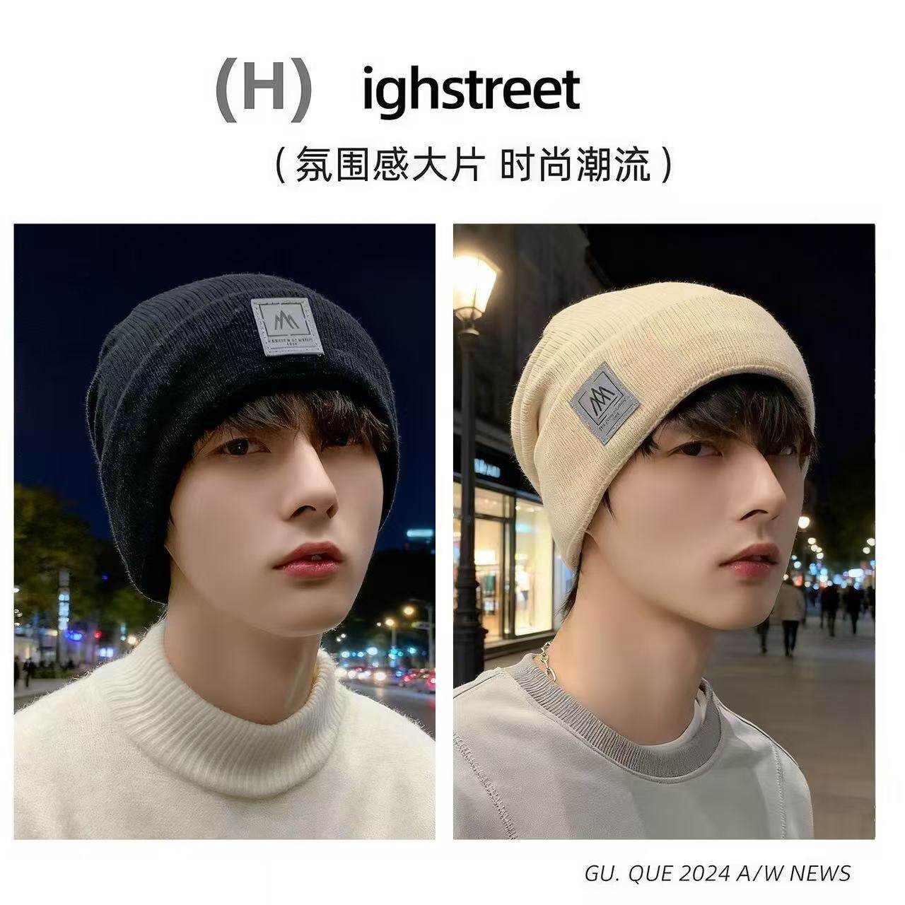帽子男士秋冬潮毛线帽男款保暖百搭冷帽宽松大头围显脸小针织帽男