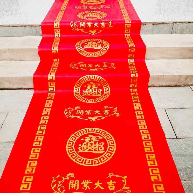 结婚红地毯一次性楼梯门口加厚无纺布喜字婚庆用品红色大地毯