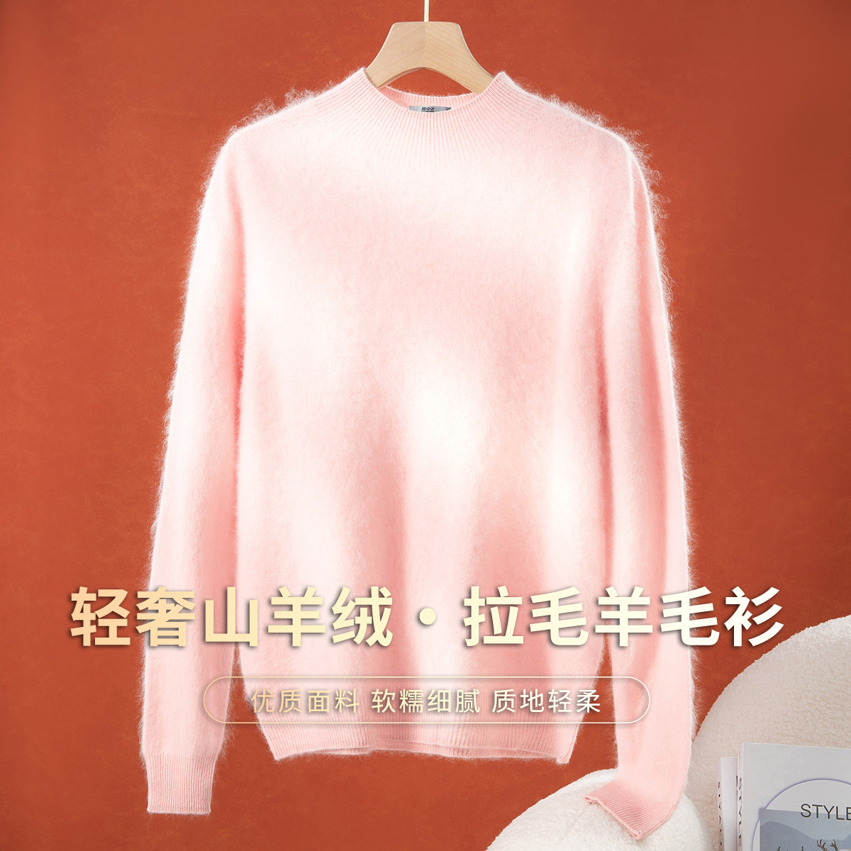 品牌高级感羊毛衫女半高领宽松毛衣秋冬加厚羊绒长袖针织打底衫新
