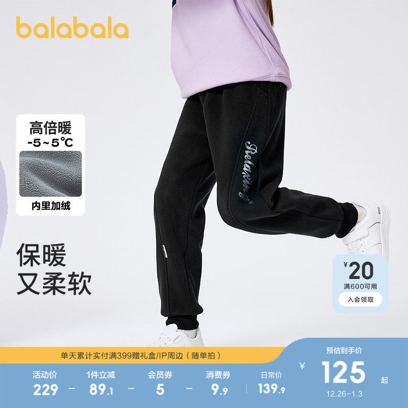 巴拉巴拉童装女童加绒裤子冬装中大童长裤儿童运动保暖潮宽松时尚