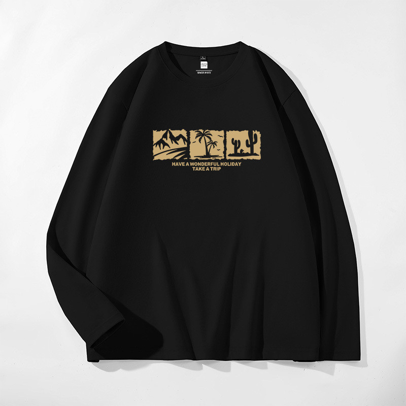 纯棉时尚简约印花多色可选长袖T恤