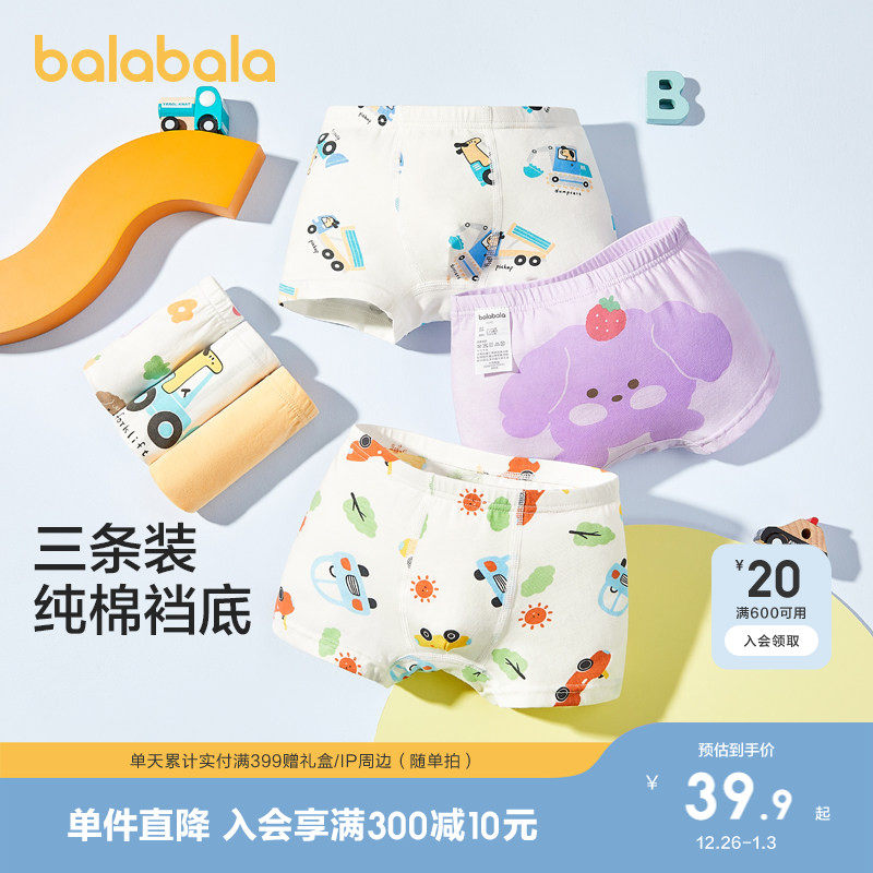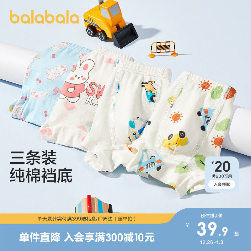 【balaOne】巴拉巴拉儿童内裤棉男童不夹pp抗菌裆四角短裤三条装