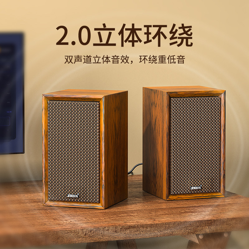 SADA电脑音响台式家用笔记本小音箱木质重低音多媒体有线桌面喇叭