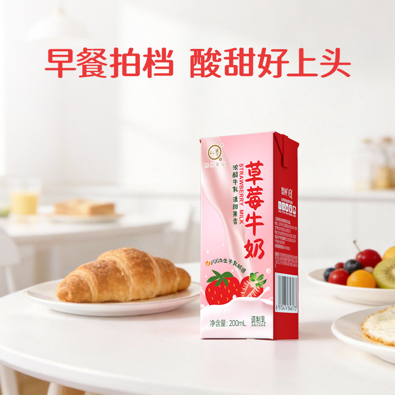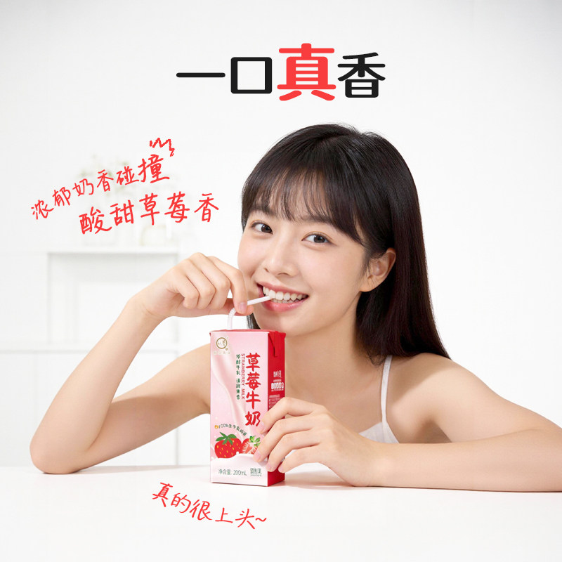 认养草莓牛奶200ml*12盒儿童学生奶早餐奶草莓奶整箱全脂牛乳