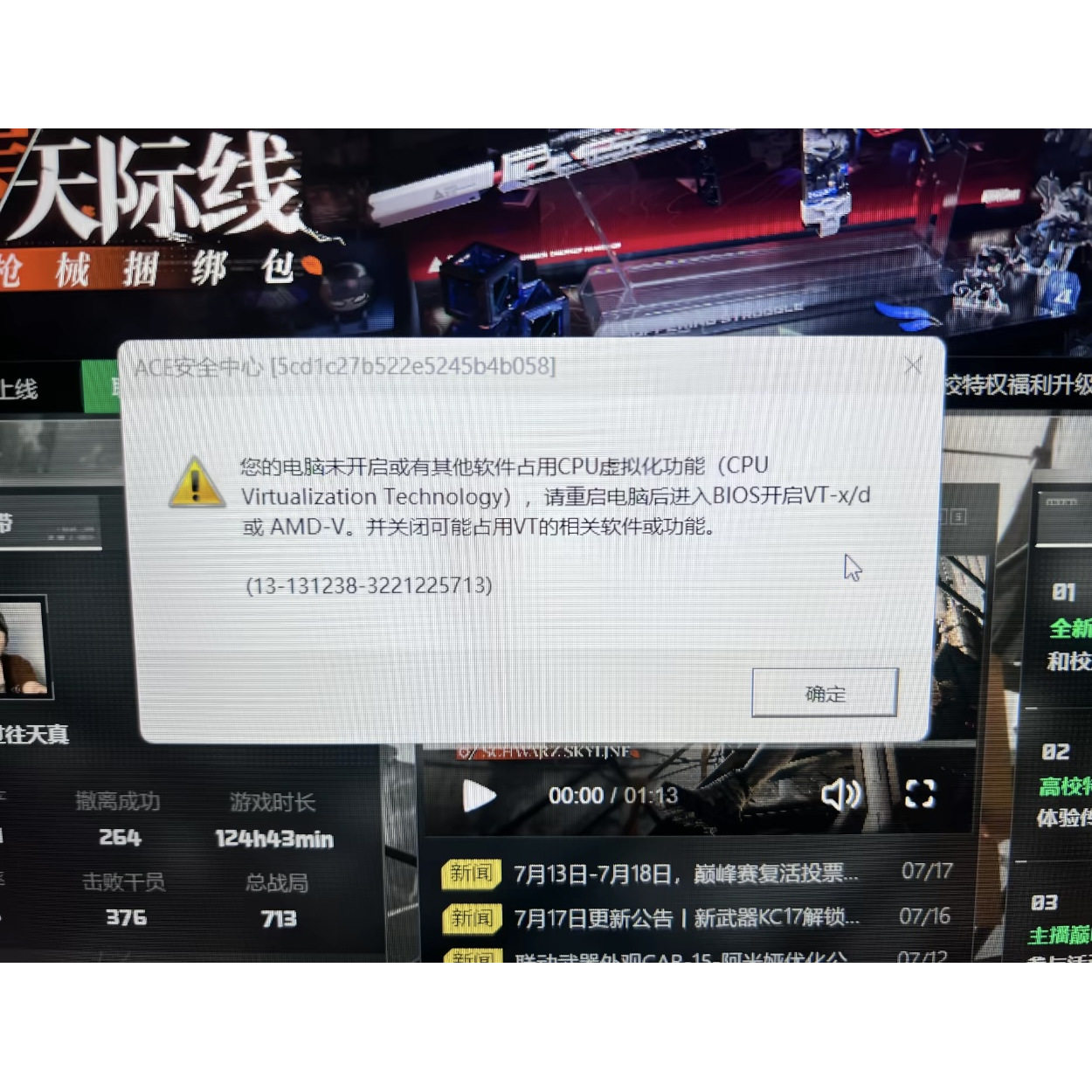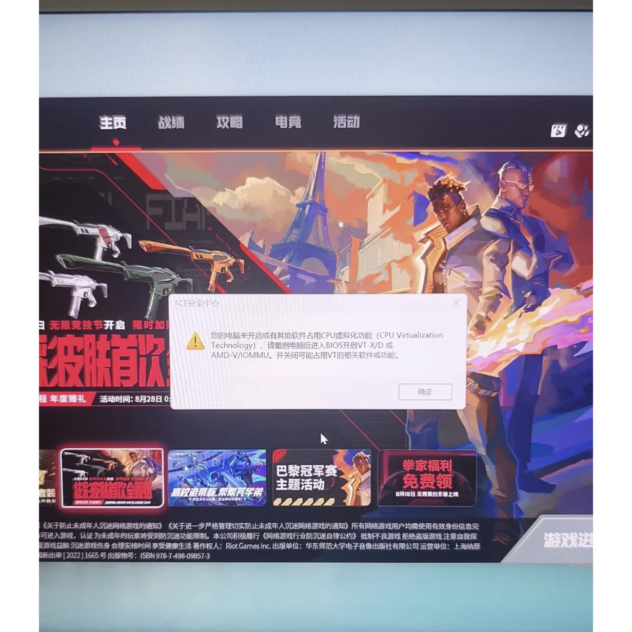 三角洲行动无畏契约瓦洛兰特弹窗安全中心电脑未开启CPU虚拟化