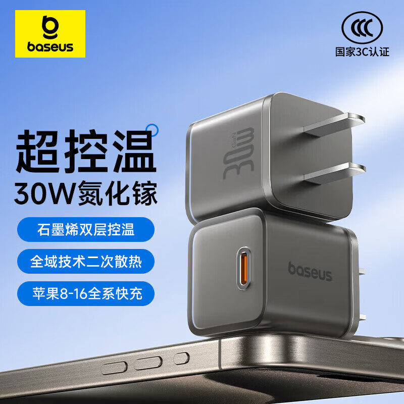 倍思30W充电头氮化镓适用苹果17充电器iPhone17promax苹果16快充头30W手机插头Type-C数据线ipad套装一体