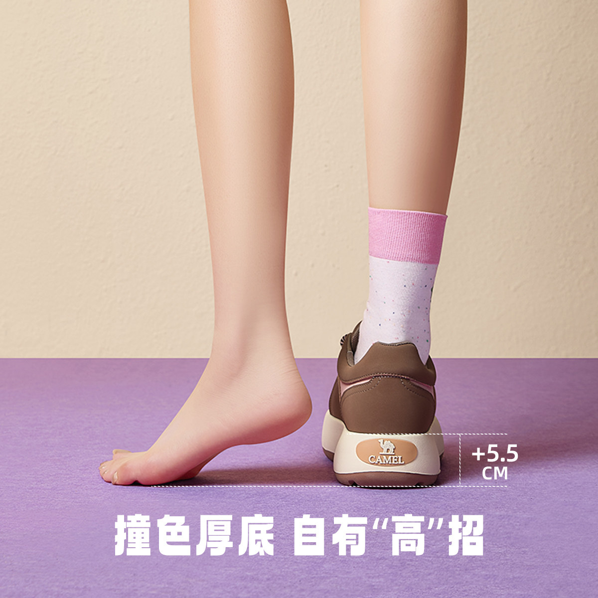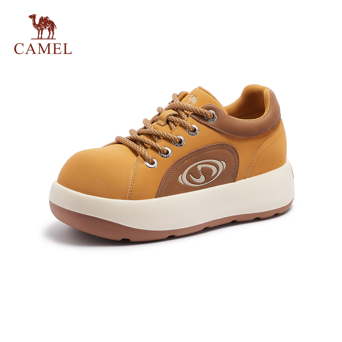 骆驼女鞋2025冬季新款时尚透气拼色运动休闲鞋平底厚底增高板鞋女