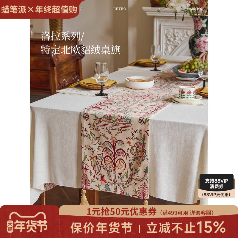 蜡笔派洛拉桌旗法式田园茶几布轻奢高端氛围餐桌盖布边柜盖布茶旗
