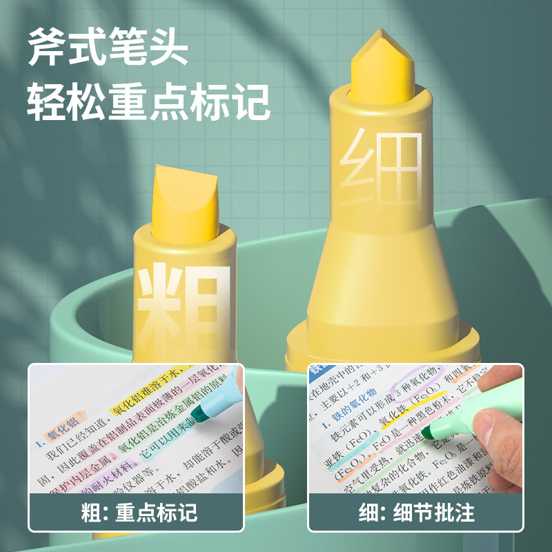 点石三角杆荧光笔12色记号笔简约学生划重点标记笔套装柔色手账笔