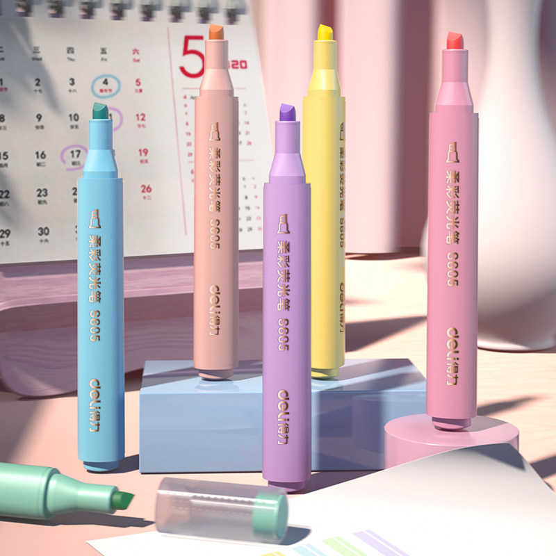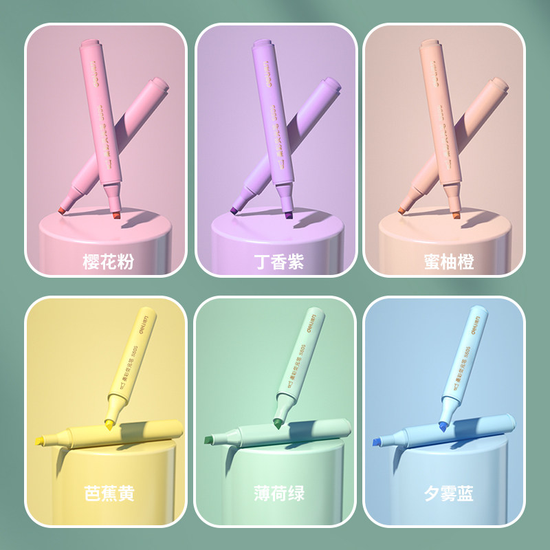 【6支6色】得力柔彩荧光笔学生用划重点标记笔做笔记儿童画三角笔杆马卡龙色笔杆记号笔手账笔涂鸦彩绘S605