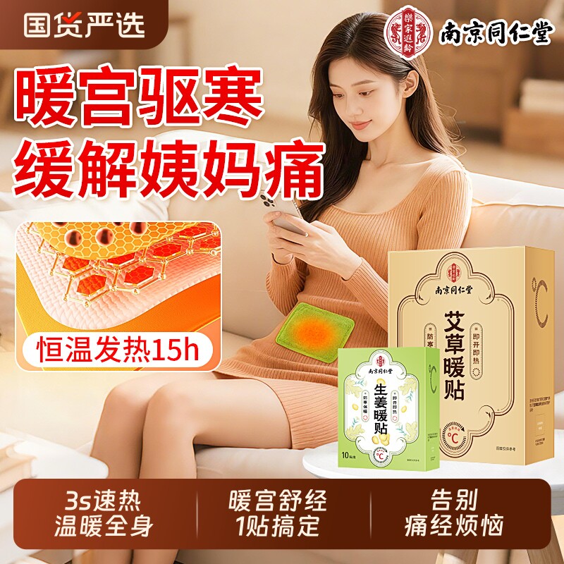 同仁堂暖宫贴艾灸贴宫寒痛经女生用生姜艾草自发热敷暖身暖宝宝贴