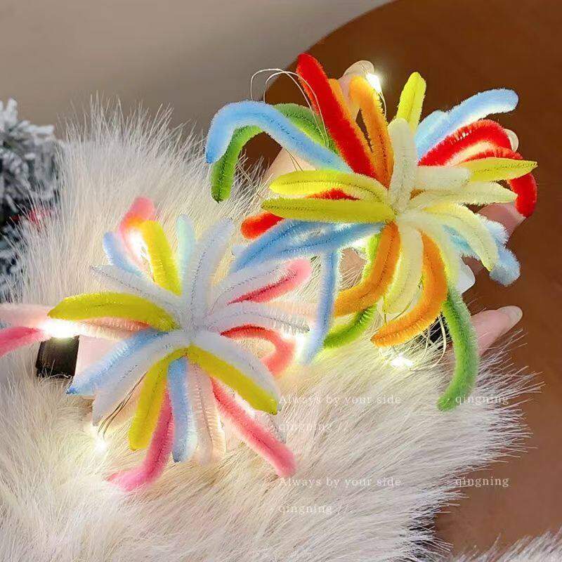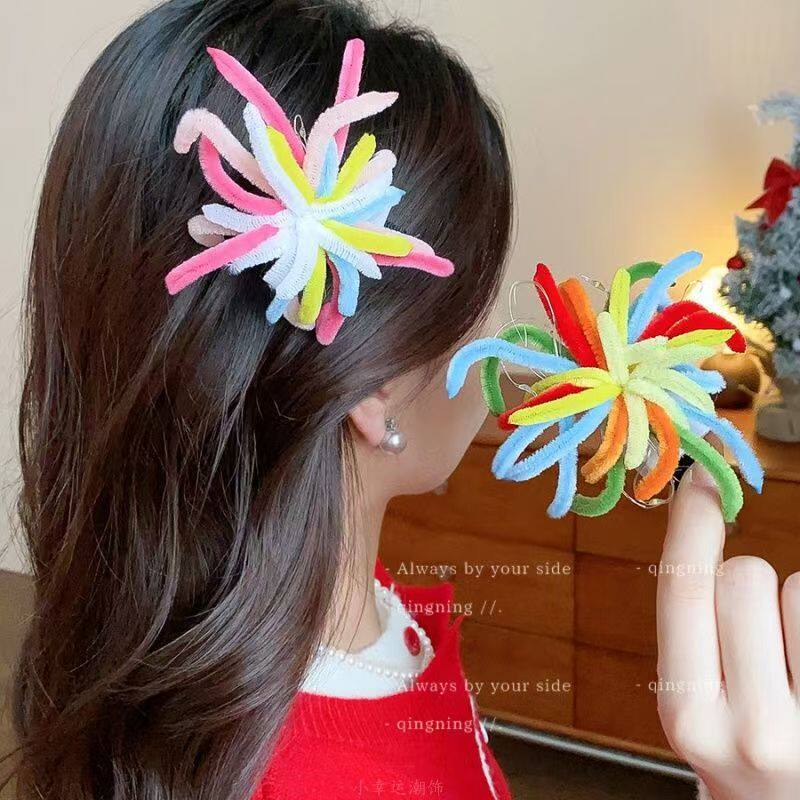 彩色扭扭棒烟花发夹发光跨年发饰女新年鸭嘴夹发卡短发造型卷发
