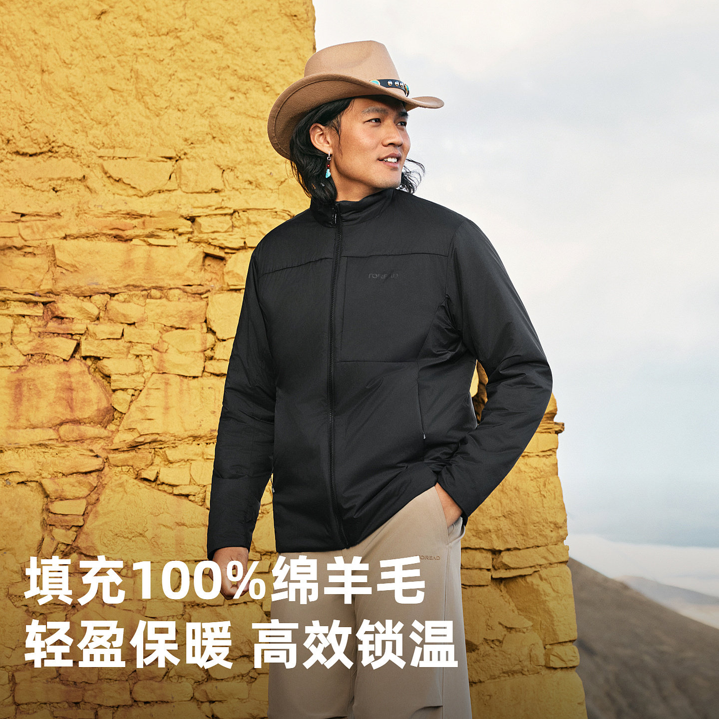 探路者2025新款男士户外运动休闲防风保暖透气绵羊毛立领棉服外套