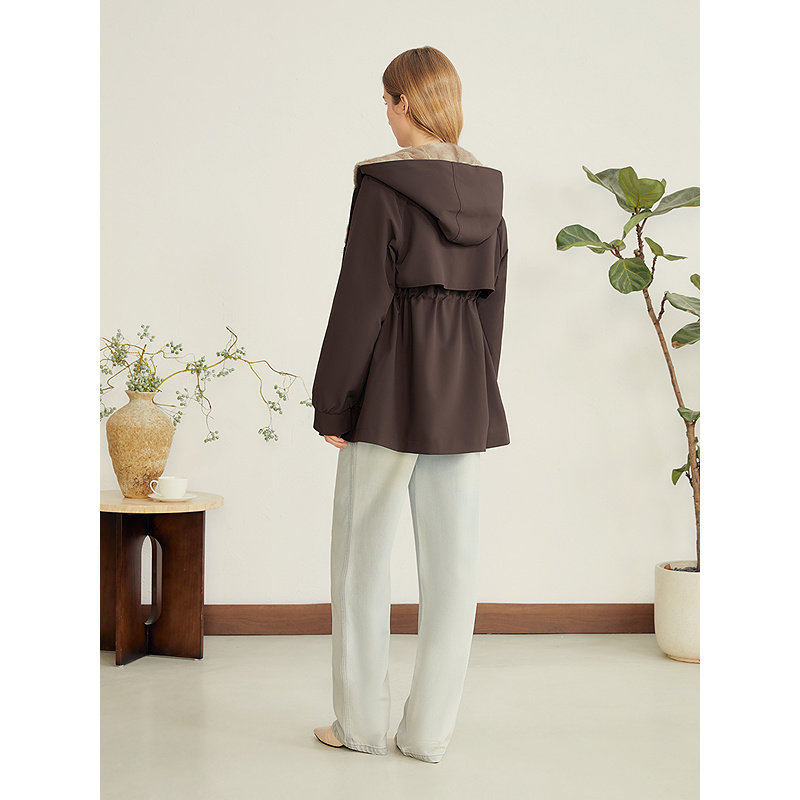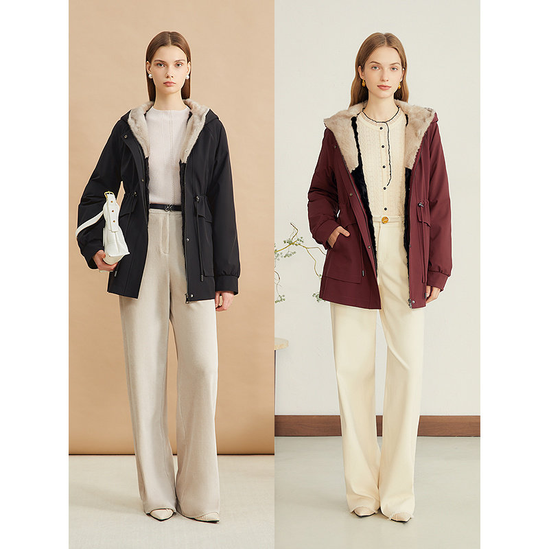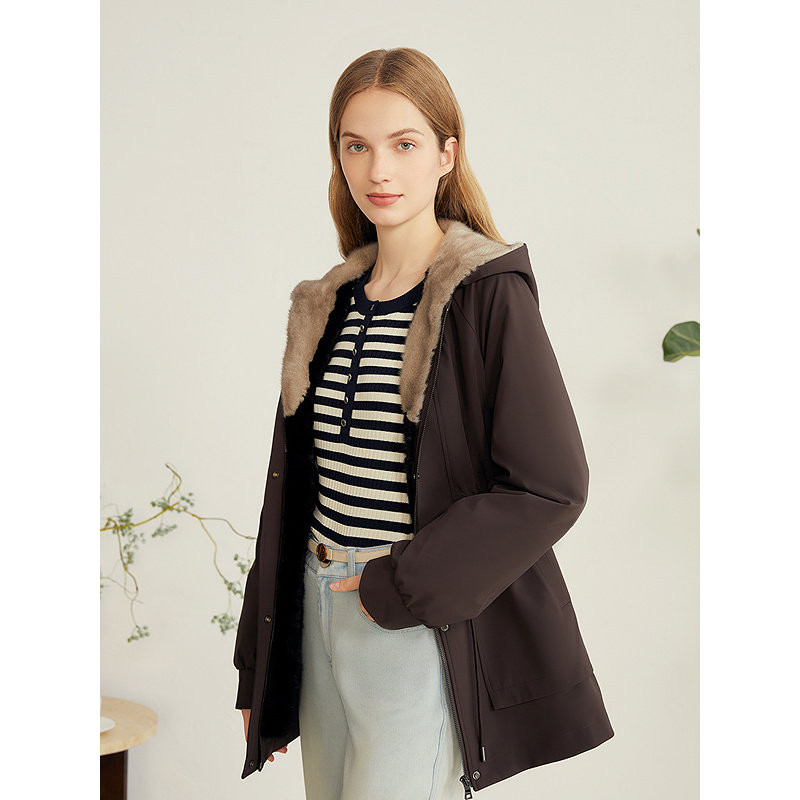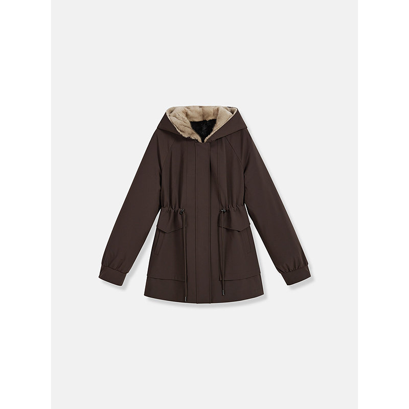 YINER音儿专选女装冬季时尚一手长保暖水貂毛帽里连帽派克服皮草