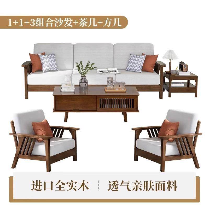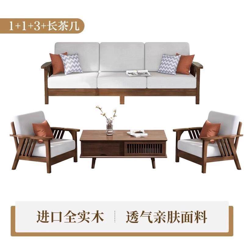 全实木沙发现代简约组合布艺贵妃小户型家用客厅经济型三人位沙发