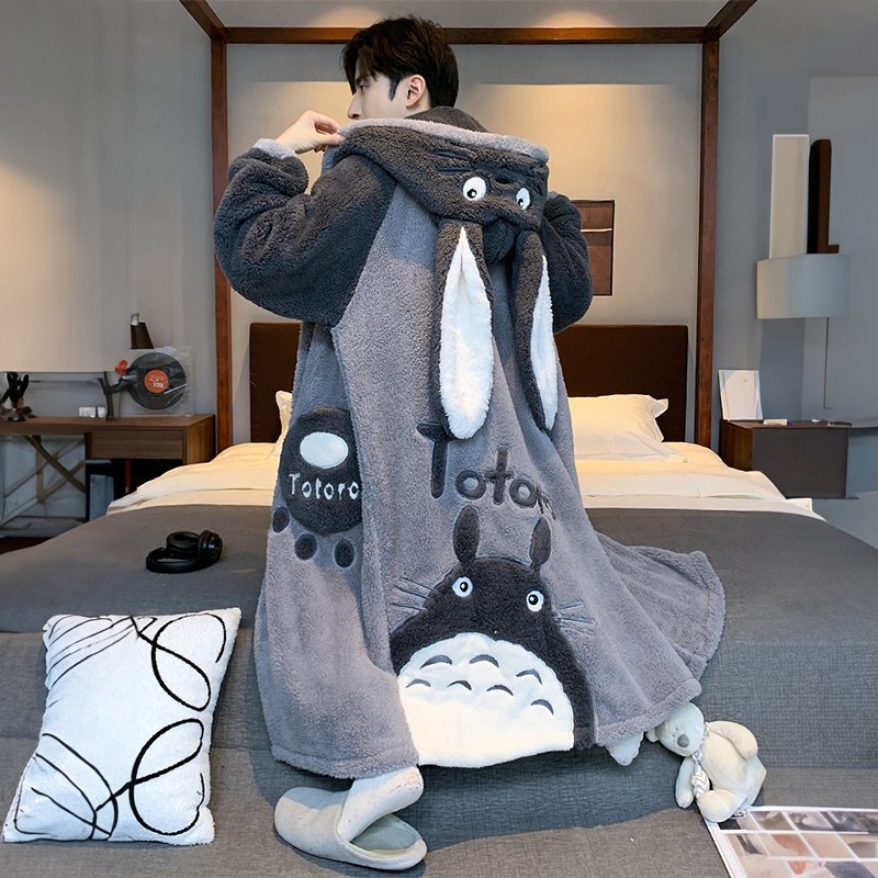 情侣睡衣秋冬季珊瑚绒青少年睡袍男加绒加厚法兰绒浴袍家居服女