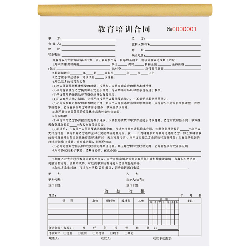 教育培训收据课程销售合同成人考研入学协议单报班报名表机构票据