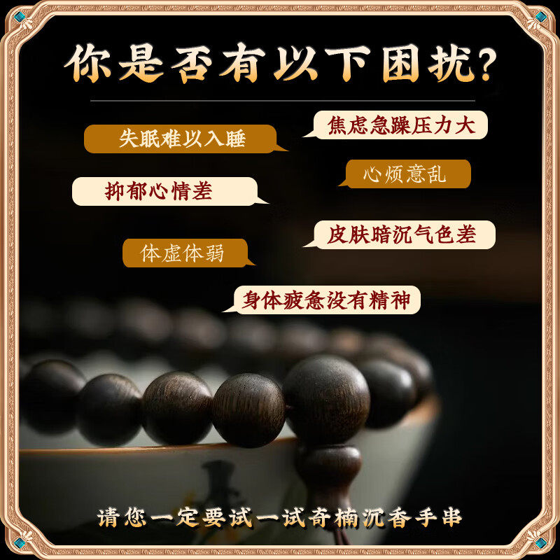 天然奇楠沉香手串108颗多圈男沉水级木质文玩佛珠念珠手链女百年