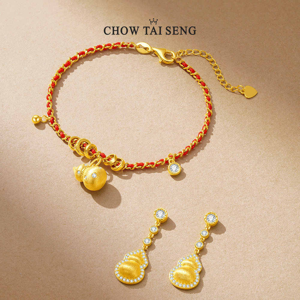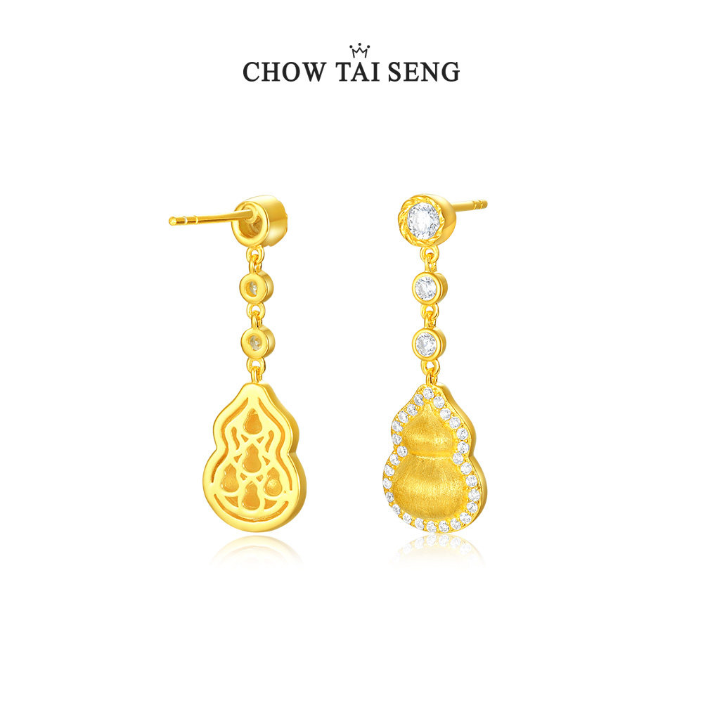周大生福禄连连纯银S925耳钉女高级国风葫芦耳饰生日礼物送女友