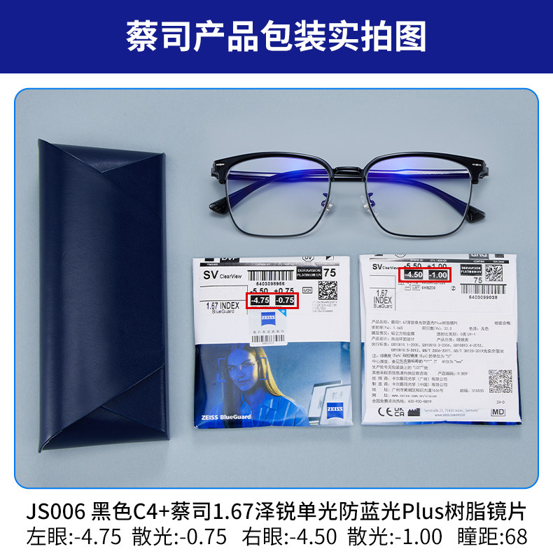 蔡司泽锐变色镜片1.74铂金膜1.67新清锐可配近视防蓝光眼镜片