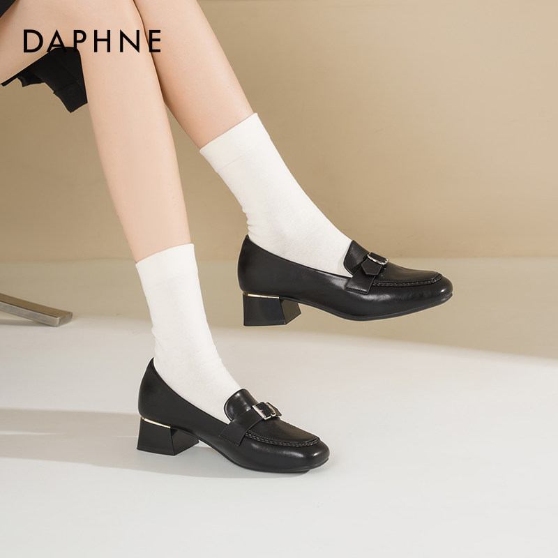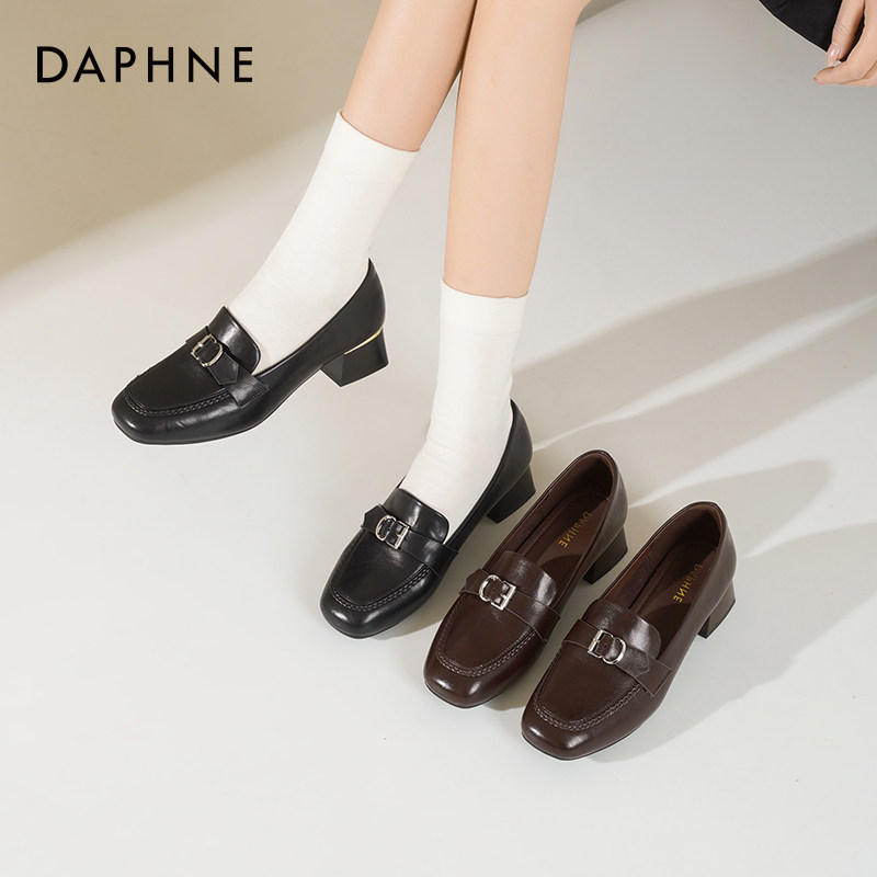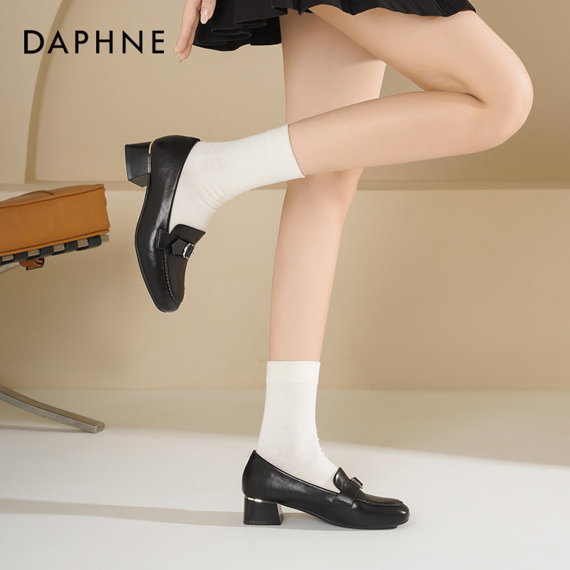 达芙妮粗跟乐福鞋女2026新款春季英伦风复古小皮鞋一脚蹬通勤单鞋