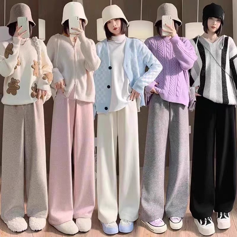 孕妇裤冬季加绒加厚2025新款羊羔绒直筒裤子时尚外穿秋冬款阔腿裤