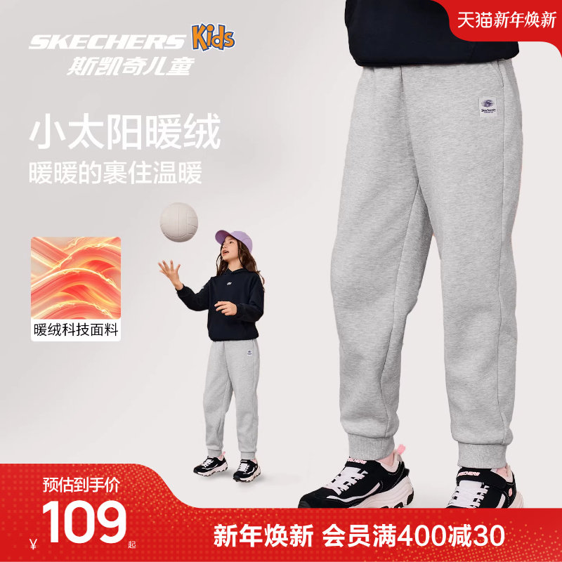 Skechers斯凯奇儿童舒适宽松裤子秋冬童装加绒保暖长裤男女童卫裤