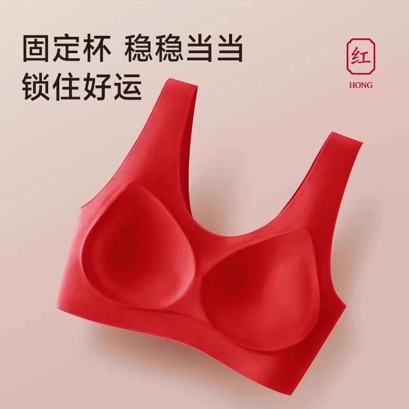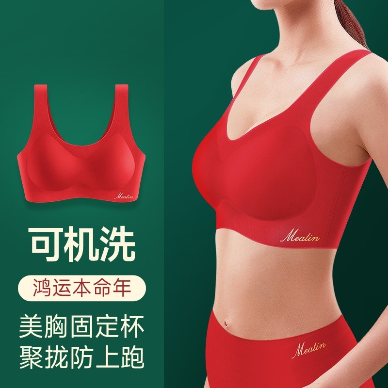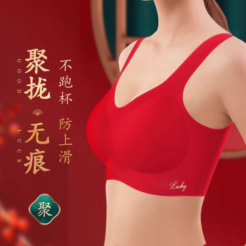 本命年无痕红色内衣内裤女套装文胸结婚属新娘女装礼物背心式聚拢